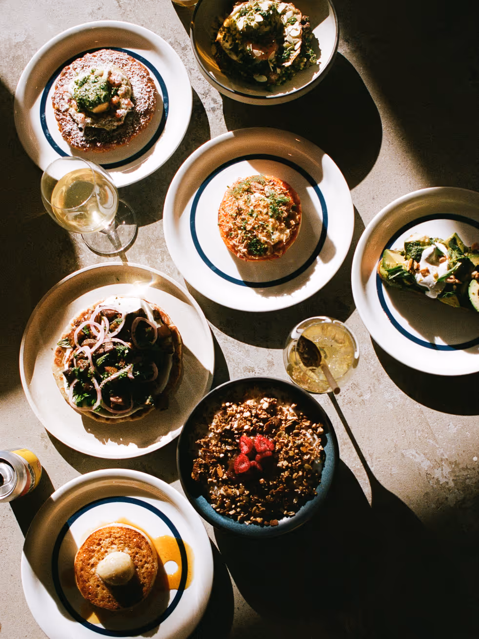 Charred corn fritter. Whipped avocado. Pico Di Gallo. Green sauce. Organic Poached egg. Pecorino.
